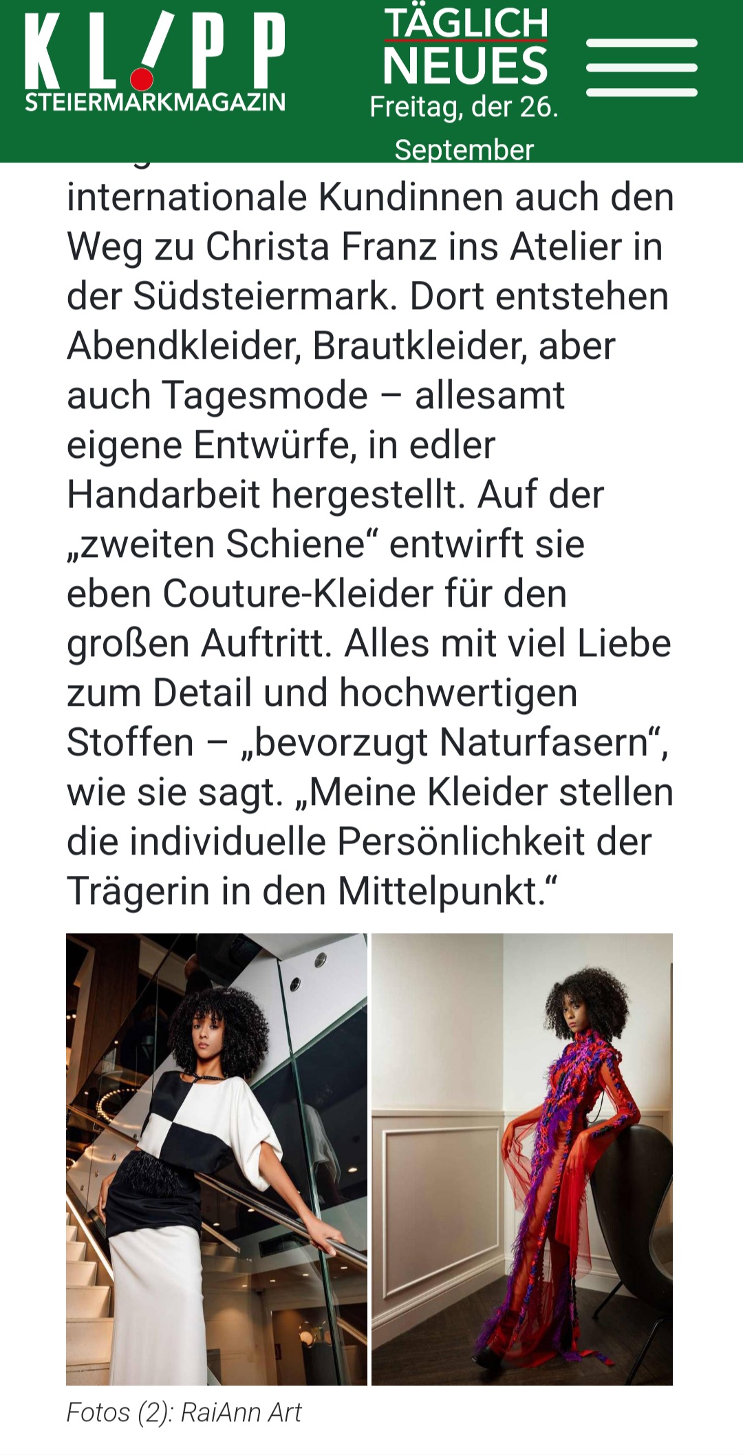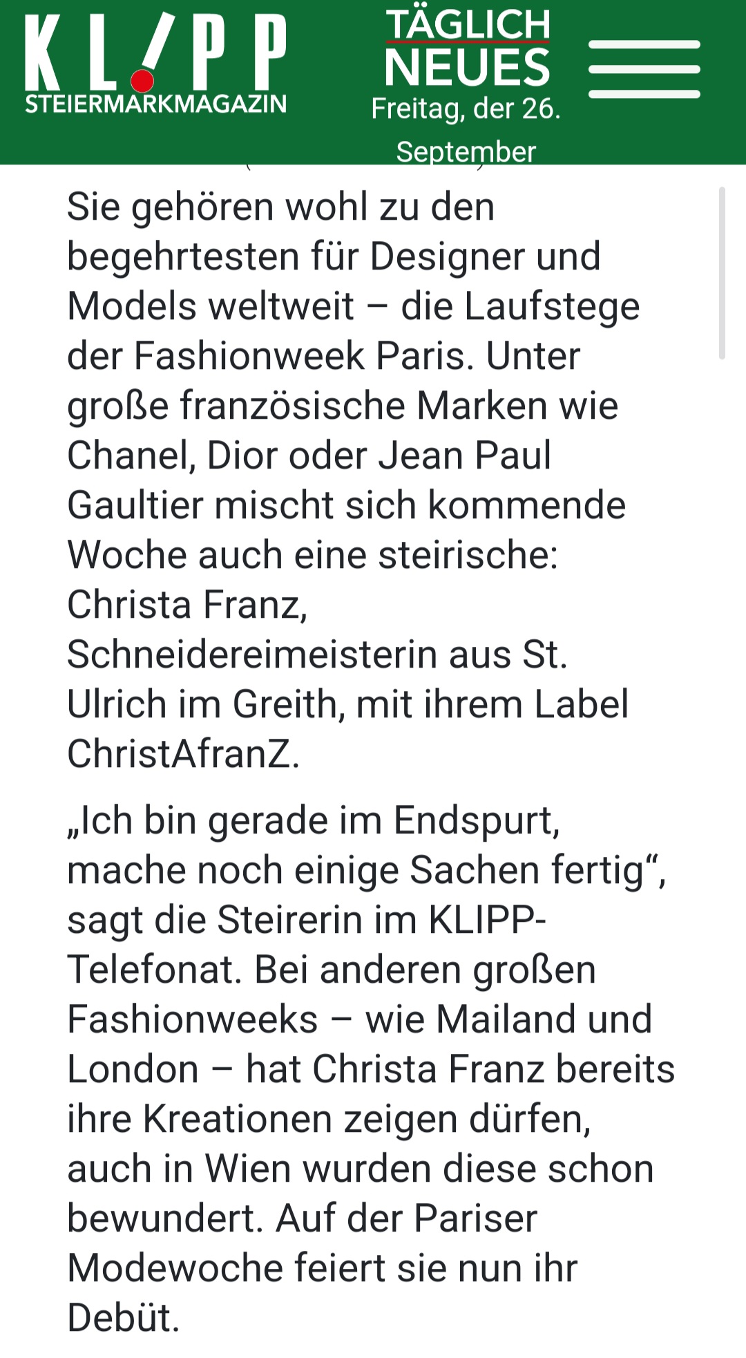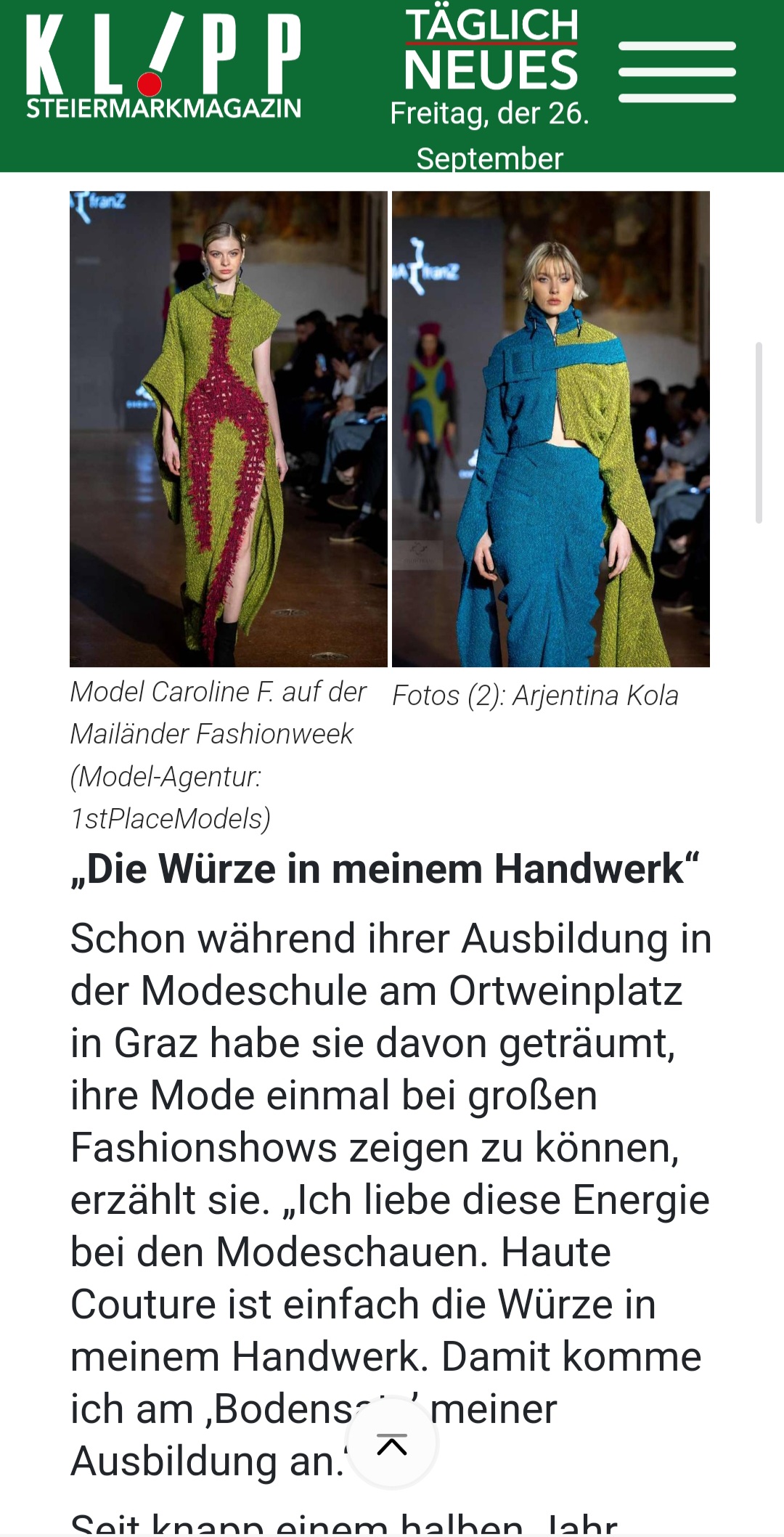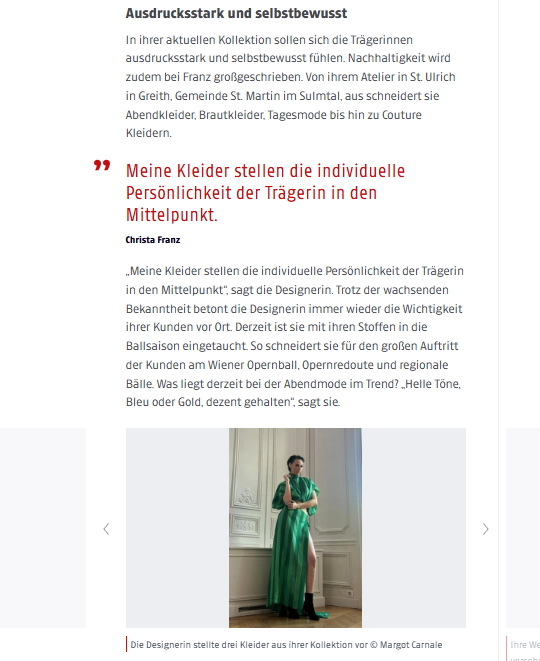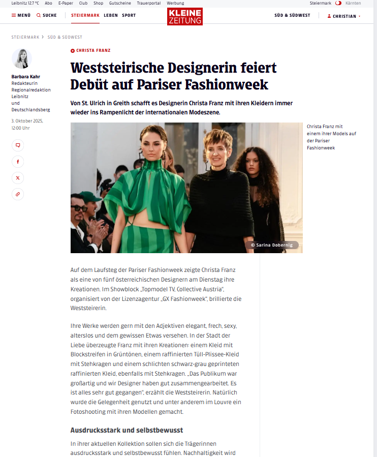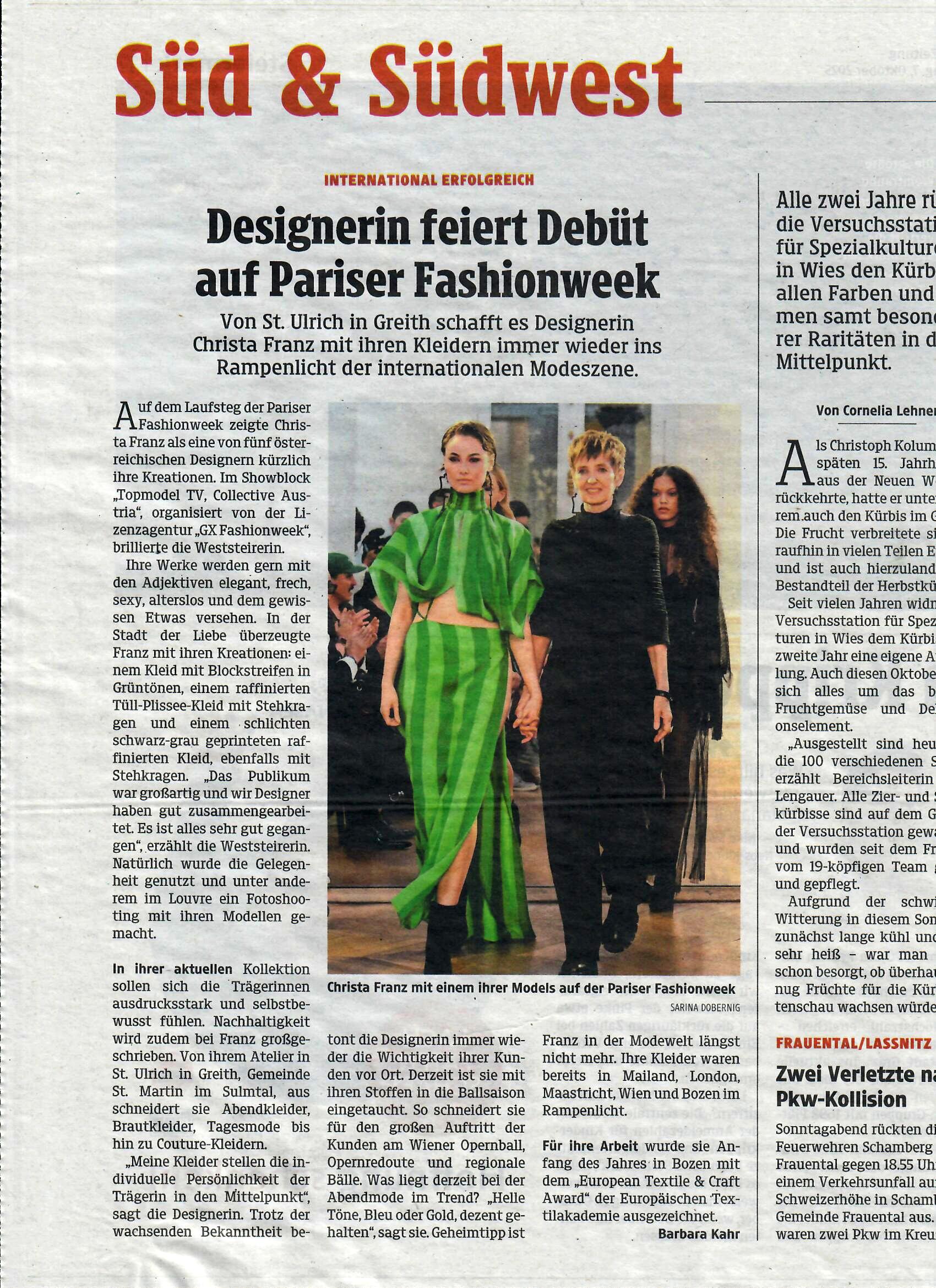 Presse Beitrag - Kleine Zeitung - Weststeirische Kleider am Laufsteg